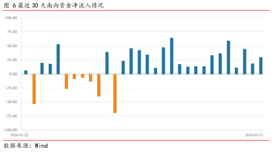 南向资金持续活跃。截至3月11日,南向资金本月净流入234.58亿港元,本年度净流入706.51亿港元,南向资金已经连续18个交易日净流入,显示了南向资金对市场情绪积极。