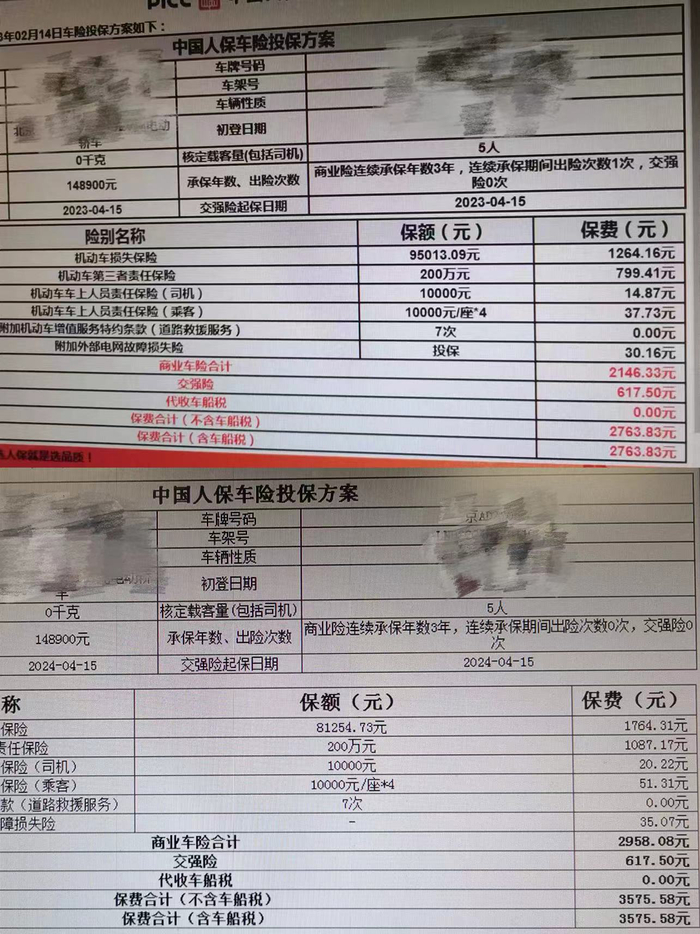另一位来自湖北的罗女士却面临着原保险公司拒保的烦恼。罗女士对记者表示,在第一年为刚买的比亚迪新能源汽车购买了4500元左右的商业险后,一年时间内两次出险,共计赔付约3万元,今年在临近续保时间内却因为被标记为频繁出险的高风险客户,而被人保拒绝续保。随后,罗女士不得不在多家互联网保险代理平台辗转寻求其他保险公司的报价。
