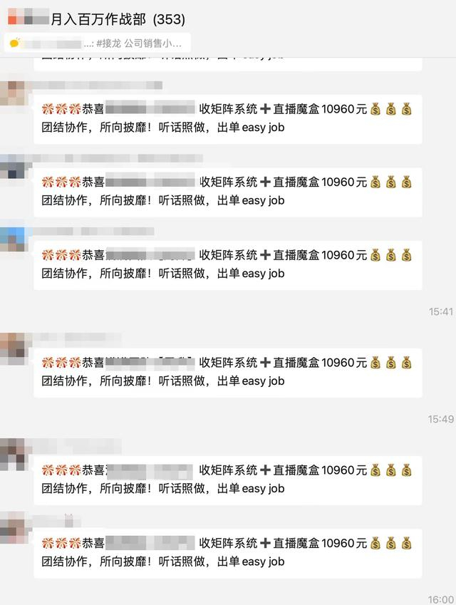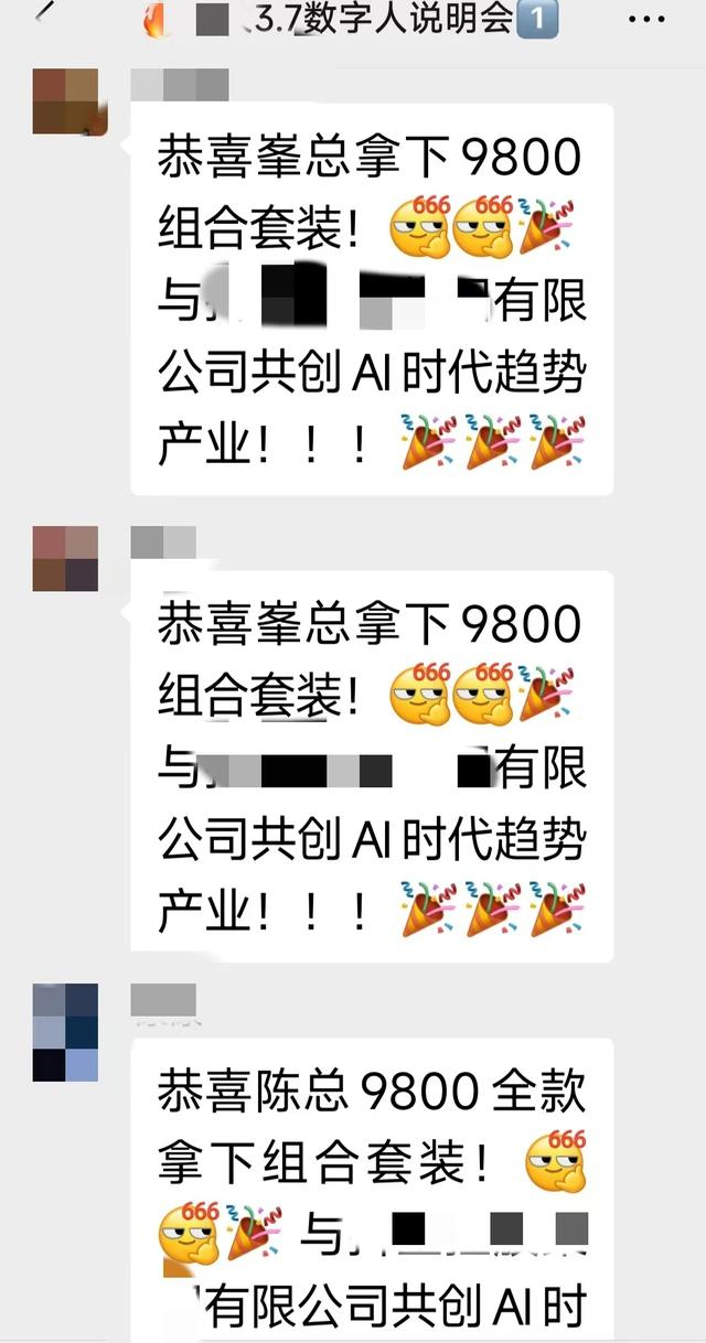 在所谓的课程群中,时不时有人疯狂刷屏“恭喜XX总支定金锁定代理福利名额,与公司共创AI时代趋势产业!”