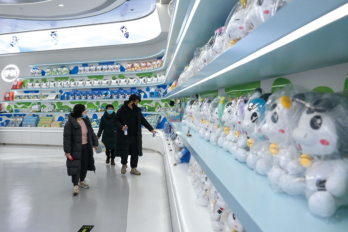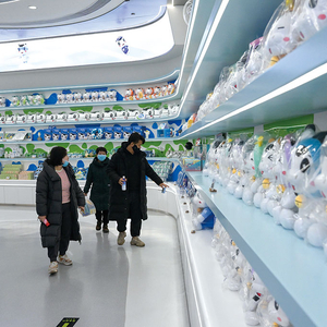 近年来,内蒙古自治区呼和浩特市积极推进奶业振兴,支持龙头企业加强科技创新,提升奶业自动化、智能化生产水平,同时不断延伸产业链条,形成奶业全产业链发展格局,进一步增强奶业质量和效益,为当地经济高质量发展添活力。图为近日,在呼和浩特市伊利现代智慧健康谷智造体验中心,游客在挑选乳制品和文创产品。 李志鹏 摄