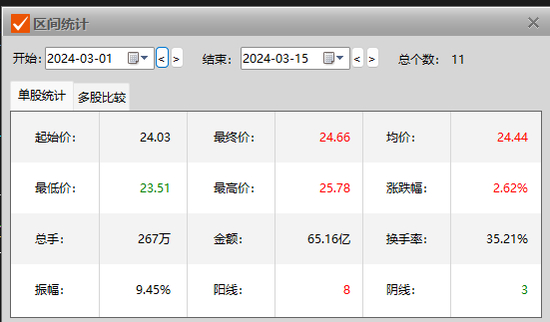 界面新闻统计,3月1日至3月15日期间,双环传动股价累计涨幅2.62%,期间换手率35.21%。截至3月15日午盘,该股票休市时股价报24.66元/股;而2022年10月该公司最新一期定增发行价是27.35元/股,据此粗略计算,双环传动当前股价已较此前定增发行价下滑约10%。