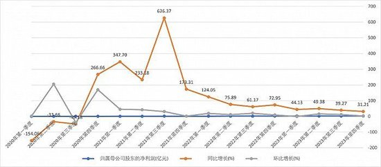 据东方财富Choice数据,2023年前三个季度,该公司单季度归母净利润的同比增长率分别是44.13%、49.38%、39.27%。
