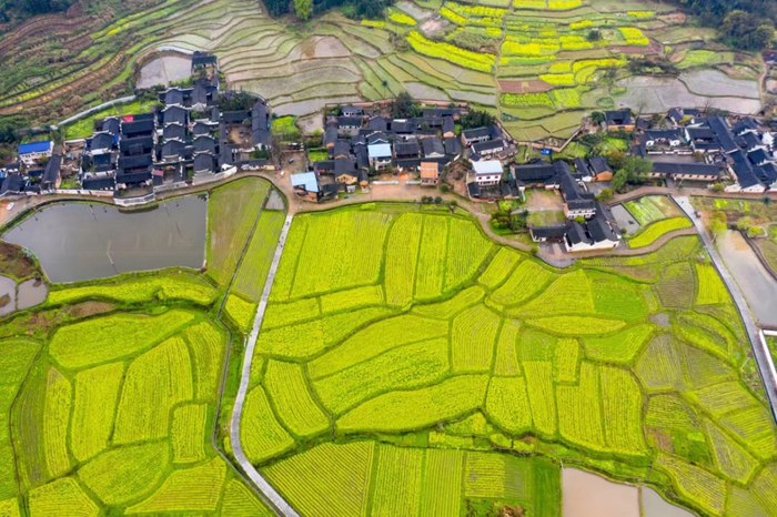 风恬日暖荡春光,戏蝶游蜂乱入房。近日,零陵区周家大院、祁阳市德辉景区、双牌县枫木山油菜花基地、道县两河口等地的油菜花迎来盛开期,成片成片的油菜花田,汇聚成一片花海,与蓝天、青山、乡间小路、游客相映成趣,绘就出一幅幅秀美的乡村田园新画卷。