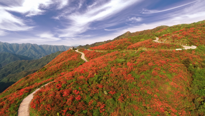 拾级而上,常有花枝在头上乱颤,两旁的杜鹃花有的傲然怒放,有的羞涩地躲在绿叶间,还有的则干脆藏在缝隙里,但每一朵有每一朵的清香,每一朵有每一朵的似水柔情 。