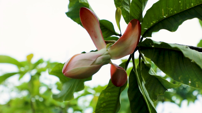 篱外高枝厚朴花, 雨晴山鹊语喳喳。厚朴花朵开放时,花瓣颜色呈白色。厚朴花开,大似银盘。厚瓣大蕊,似树上菡萏。远望厚朴林,如云卧碧空,明霞散绮。每年5-6月,在道县洪塘营瑶族乡的高山上,12万亩厚朴迎来盛花期,红、白、黄三色厚朴花在碧绿的厚朴叶上随风起舞,气质出尘,宛若山间精灵。