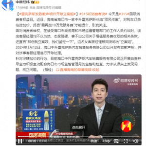 2024年3月12日,海口中升雷克萨斯汽车销售服务有限公司公开发布致歉声明,并对涉事客服经理进行开除处理。
