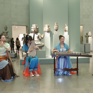 本次展演落地法国巴黎吉美国立亚洲艺术博物馆,该馆收藏了将近四万多件的亚洲艺术品,是亚洲地区之外最大的亚洲艺术收藏地之一。其中中国展厅展出的汉代至唐代的佛教造像和绘画,包括法国汉学家伯希和(Paul Pelliot)从敦煌带回的《阿弥陀西方净土变图》《普贤菩萨骑象》《行脚僧像》等彩绘绢本,与本次复原的敦煌石窟壁画服饰穿越时间与空间再次相遇。