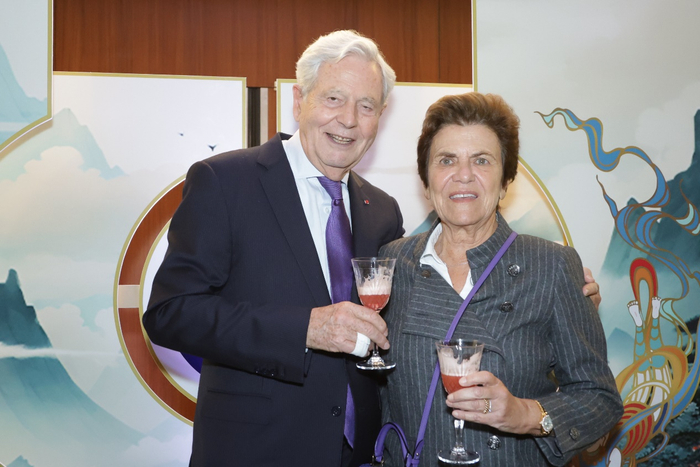 法国老佛爷百货公司董事长飞利浦·乌泽(Philippe Houzé)先生携夫人在飞天茅台打卡点前拍照