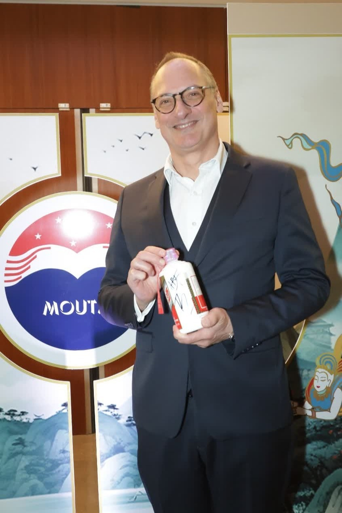吉美博物馆主席雅尼可·琳兹( yannick Lintz)品鉴茅台鸡尾酒并以吉美博物馆之名签名茅台酒