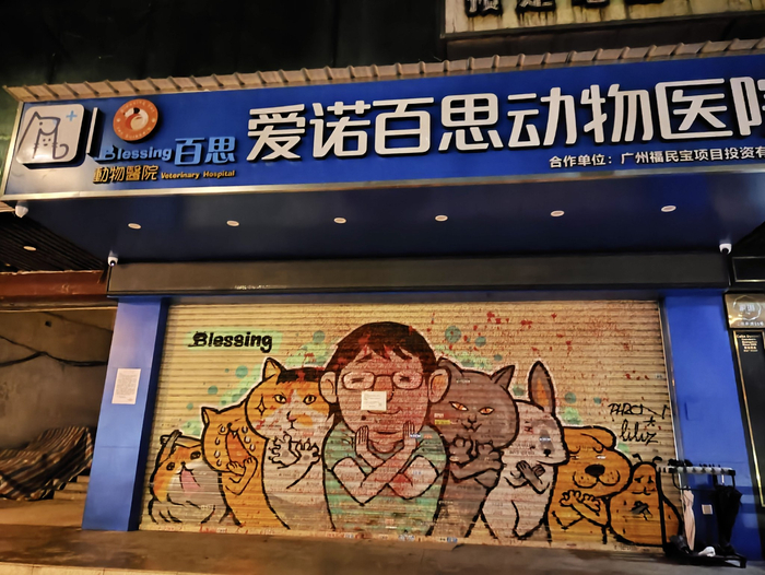 广州爱诺百思动物医院江南西分院大门外。摄影:李科文