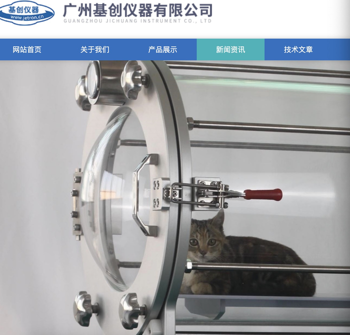 不过,界面新闻记者未能查询到广州基创仪器生产的宠物高压氧舱的具体产品信息或是批准证明,致电广州基创仪器询问也未获回应。广州基创仪器官网显示,在产品目录动物医疗仪器栏中,宠物高压氧舱已被下架,仅剩一款动物ICU重症监护舱。
