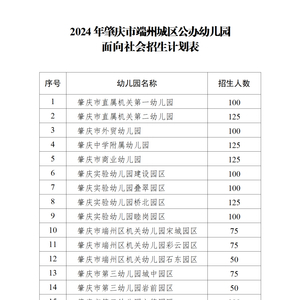 端州城区15所公办幼儿园今年秋季招生计划数经所属上级教育主管部门审核后,公布如下: