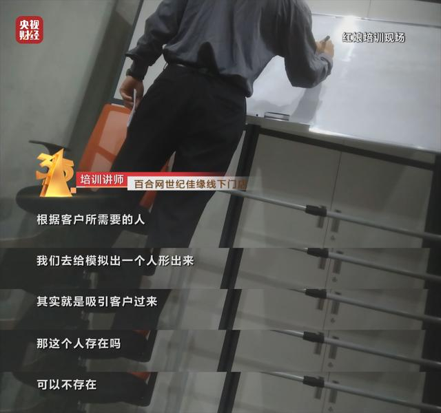 上岗前的培训,婚恋平台从经理到培训老师,再到培训好的销售红娘,职业的重点不是促成一对对的千里姻缘,而是如何用欺骗性的“话术”引诱消费者,目的就是为了业绩提成。