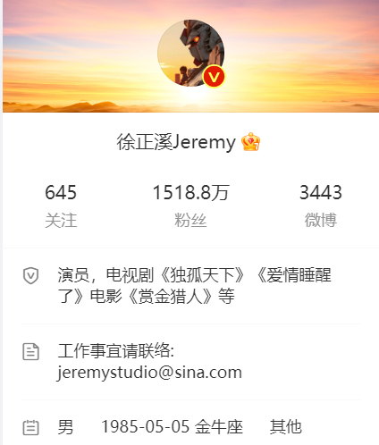 3月15日,演员徐正溪发文:“告别演员岗位谢谢长久支持🙇🏻♂️给你们添麻烦了 🙏感谢一切,我爱你们”