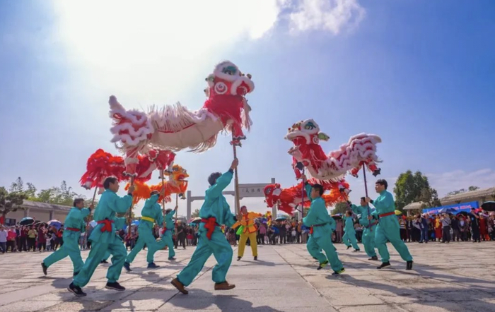 在古代,舞狮是一种驱疫逐鬼的仪式,明清以来,被赋予送福、祈福的含义。广东流行的传统南狮(又名醒狮),一种是矮脚狮,另一种是流行于粤西等地的高脚狮。一次完整的演出,共有四种形态:一是出游。狮子从武馆(狮馆)出来,先面向狮馆拜三个花再出游,出游完毕后回到狮馆门前,也要向狮馆拜三个花。二是采青,相传古时“采青”是祈愿生龙活虎、生意兴隆的好兆头。三是点睛。舞狮在点睛前处于沉睡状态,主人或德高望重者用毛笔醮朱砂给狮子点睛,唤醒狮子,所以也叫“醒狮”,点睛后狮子苏醒将带来好运。四是武术表演。在舞狮的间歇时段,舞狮班成员运用不同道具向观众展示各类武术表演。茂南舞狮粤西地区乃至岭南地区最完整的图式(阵图)体系之一。