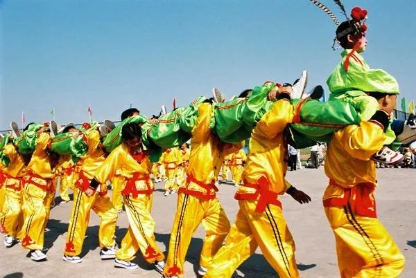旦场村的人龙舞起源于清朝雍正年间,迄今已有近300年的历史,在茂名地区独一无二。历经近300年的传承和演变,如今的人龙分“龙头”、“龙身”和“龙尾”三部分,由青壮年村民以及儿童的身体搭扣而成,每个大人的肩上都支撑着仰面躺下的小孩。在锣鼓声的配合下,人龙左盘右旋,起伏舞动,栩栩如生。近300年来,人龙舞成了旦场村村民庆祝丰收,祈求风调雨顺、五谷丰登的一种传统方式。旦场村年年人龙飞舞,锣鼓喧天,万人齐呼,给村民带来了无限的欢乐,处处都呈现出一派繁荣、祥和与和谐的景象。