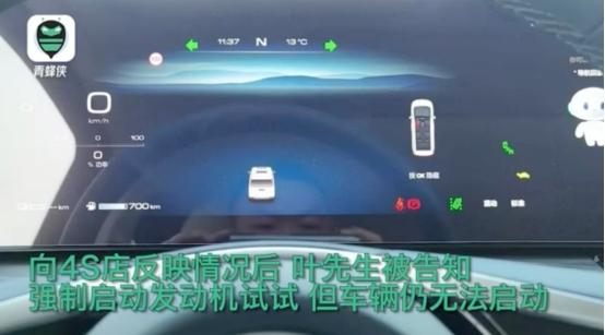 在应急车道停好后,叶先生注意到车辆仪表上显示了一个“小乌龟”。他随后向4S店反映情况,被告知强制启动发动机试一下,但车辆仍无法启动。