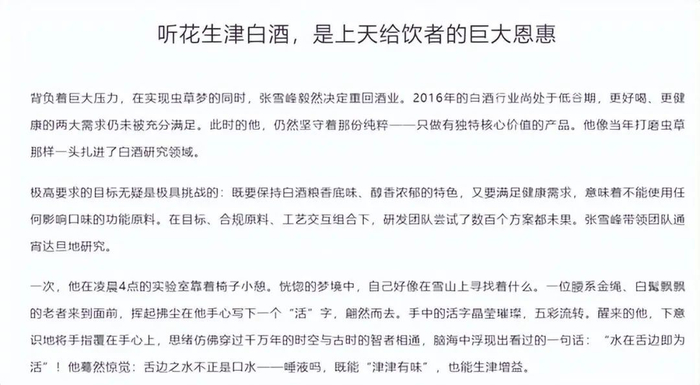 值得注意的是,公司官网中显示,听花酒总设计师张雪峰还担任上市公司青海春天的法人代表。在研发历程中,提及的冬虫夏草为青海春天的主营之一,此外还有以酒水产品销售为主的快消品业务板块。