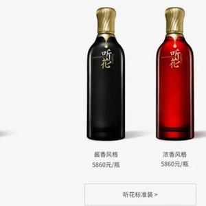 其听花酒精品装,有酱香、浓香两种风格,每瓶750毫升,售价58600元。