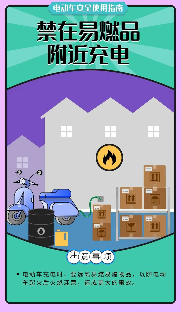 六、加强电动车消防安全科普教育。物业服务企业、主管单位及各区政府、镇街应加强宣传电动自行车停放及充电“八个严禁”以及“进楼入户”“人车同屋”“飞线充电”和违规改装的危害,同时通过播放典型火灾案例警示片,印发宣传材料,设置消防安全警示标志和海报,加强消防演练,普及消防常识和自救逃生技能,教育市民加强火灾防范,提升消防安全素质,一旦遇到电动车火灾能够正确逃生自救。