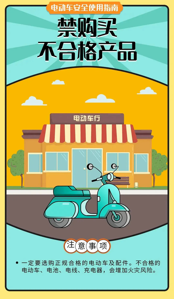 三、严格遵守电动自行车停放充电“八个严禁”。严禁在居民住宅区的楼梯间、楼道、疏散通道、安全出口等公共区域停放电动自行车或为电动自行车充电;严禁私拉乱接充电线路为电动自行车充电;严禁在易燃可燃材料搭建场所为电动自行车停放或充电;严禁损坏、挪用或者擅自拆除、停用电动自行车集中停放充电场所的消防设施、器材;严禁私自改装、扩容、更换电动自行车电池;严禁超时充电和过度充电;严禁电动自行车及蓄电池“进楼入户”“人车同屋”;严禁在消防车通道、消防车登高操作场地停放电动自行车。