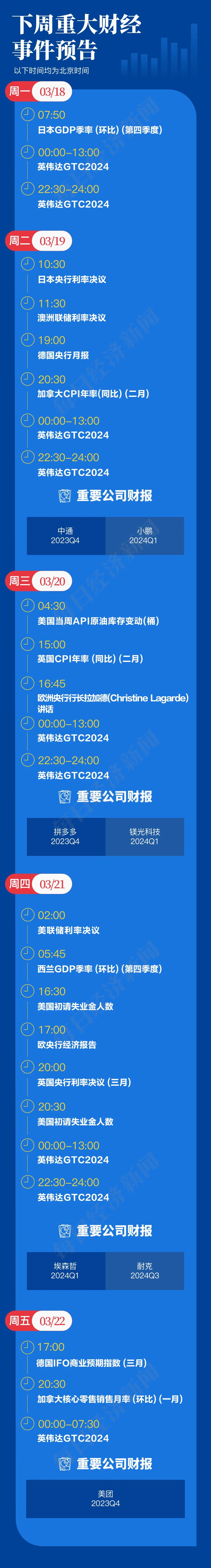 ◎英伟达年度大会下周揭幕;“春斗”初步结果出炉:日本工会宣布赢得33年最大涨薪 ,负利率或近尾声;更多内容,尽在《一周国际财经》。