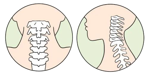 ❏ 颈椎X线片可观察到颈椎生理弧度减小,变直或反弓;