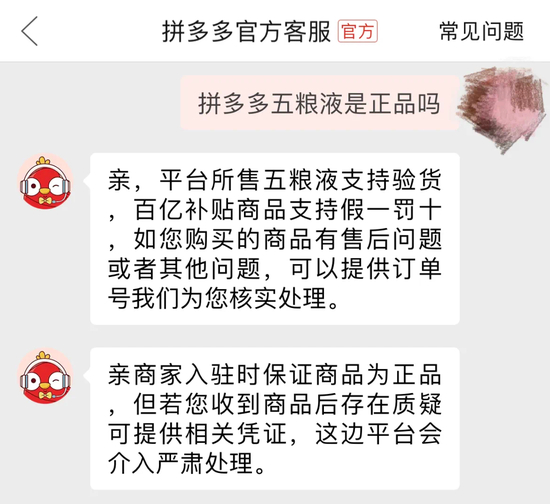 五粮液刀刀下狠手,就是没说拼多多百亿补贴上的是假的。如果是假的,拼多多也给假一罚十。