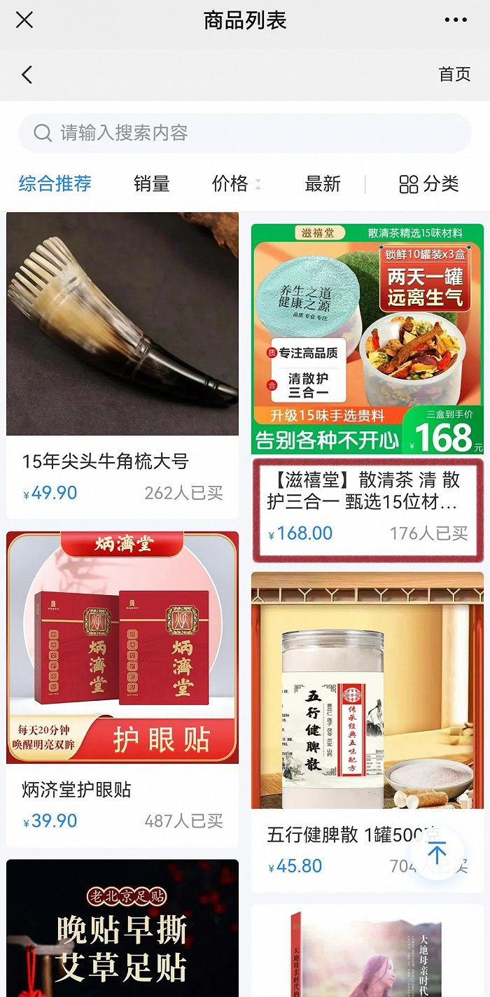 “生命艺术美学”小程序商城显示,全优植物益生元青汁已售1095份,仅此,“老师”们就可赚取5.5万元。售价168元的滋禧堂散清茶已售176件,佣金费用为1.5万元。