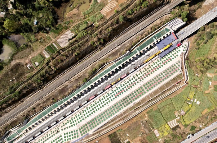 渝昆高铁的川滇段建设同样也在加快推进,全线44座隧道和91座桥梁已开工建设,7个桥隧重点控制性工程进展顺利,重难点工程筠连隧道的建设现场一片火热。