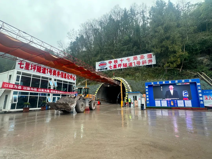 据介绍,七星坪隧道全长约13.7公里,全隧共设1个横洞、2个斜井,截至目前,仅剩2号斜井未转入正洞,正洞已掘进1145米。