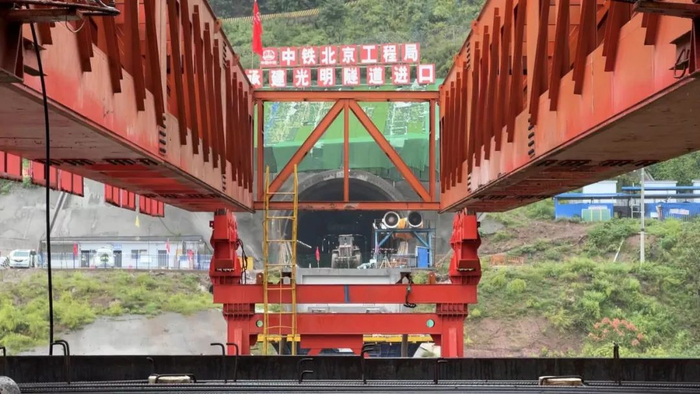 同样是西渝高铁,由中铁北京局承建的西渝高铁康渝段站前五标云观村隧道进口掘进顺利突破1000米大关,是西渝高铁项目全线第一座正洞单口开挖突破千米的隧道。