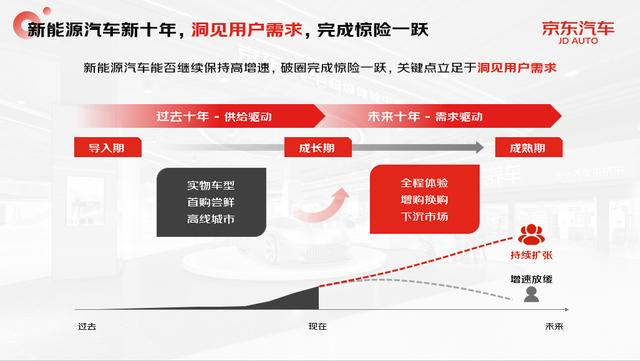 京东相关负责人表示,京东参与新能源汽车行业的初心,是因为有很多京东用户对于新能源汽车产品和服务有旺盛的消费需求,而满足他们的需求,就成为我们天然的使命。新能源汽车过去十年取得了非常大的发展和进步,销量和渗透率得到了非常大的提升。目前,行业比拼的远非单纯实物商品本身,服务的重要性越来越大。未来十年,新能源汽车要完成“惊险一跃”、保持高速增长的关键是洞见用户需求,通过提供“产品+服务”的全流程优质体验实现新的突破。