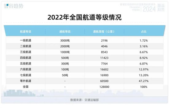 2020年,《内河航运发展纲要》颁布,明确到2035年,我国内河千吨级航道要达到2.5万公里,内河货物周转量占全社会的比重达到9%。