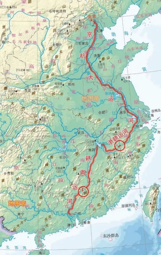 其次,在浙赣段,浙江和江西虽然山相连、路相通,但水却一直无法实现对流。你知道浙江钱塘江上游的常江和江西鄱阳湖水系的信江有多近吗?直线距离仅仅只有30公里,却一直未能接通。因此浙赣段要做的,就是在两省的交界处开凿一条运河,让钱塘江和鄱阳湖“牵手”,那么赣江的货物就能通过浙江北上长江。
