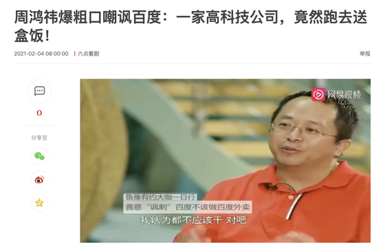 比如周鸿祎就曾讽刺过百度花200亿做外卖这件事。他说,百度作为一家科技公司,去送盒饭,就算再挣钱都不应该干。