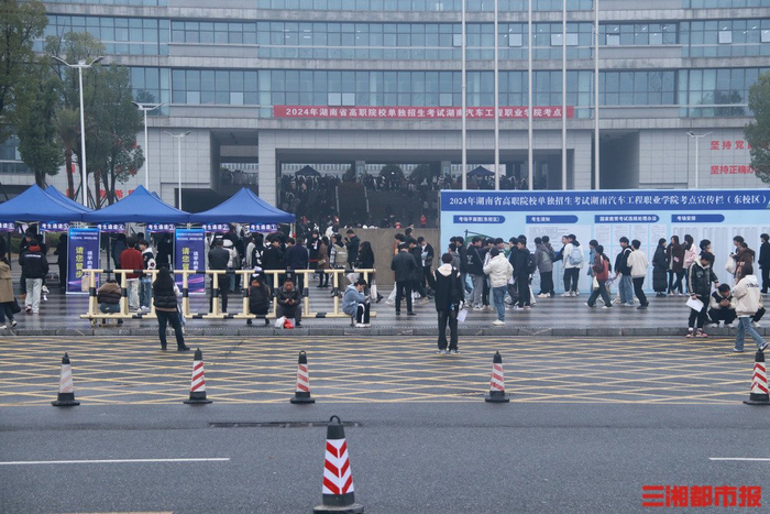 在湖南铁道职业技术学院,教学楼前迎风飘扬的横幅令人备受鼓舞。早晨7时,天色已微亮,湖南铁道职院云龙校区的工作人员、志愿者们便精神饱满、翘首以盼地为这场考试做着最后的冲刺准备。“我们对车辆进行分流,将校内教职工停车场空出来,供家长们停放车辆;同时与交警部门提前协调,引导送考车辆在校外马路边有序停靠。”湖南铁道职院保卫部、武装部部长罗奕表示,今年与往年不同,学校对送考车辆进行了分流,让家长在送考的同时,还可以深入了解学校的环境和文化。据悉,今年湖南铁道职院分设六个专业组,41个专业计划招生1600名,其中第一批次共有3241人报名。而在众多考生中,来自株洲醴陵的马如意有些特殊。他不仅是一名退役军人,而且还是第二次报考湖南汽车工程职业学院的“慕名者”。据了解,去年3月,刚从湖北某武警部队退役回来的马如意,就很想参加湖汽职院的单招考试,可惜错过了报名时间,只好先去长沙某企业应聘上班,等待今年的单招考试机会。“之所以两次单招都选择报考学校,一方面是出于对汽车的兴趣,另一方面是自己身边有好几个同学在这里就读,都说湖汽职院很好,实力很强,未来就业很好。”马如意表示,这次报考新能源汽车专业,家人也很支持,大家很看好新能源汽车今后的发展前景。“今年单招考试竞争更加激烈,共有6500余名学生报考,实际录取名额只有3500个,专业报录比高达439%……”该校相关负责人表示,希望考生考试顺利录取,实现心中的“汽车梦”。考试:取消纯主观的面试,增强测试的客观性高职单招是普通高校招生的重要组成部分,是高职院校录取学生的主要渠道。省教育厅副厅长兰勇指出,我省高职单招实施多年来,经过不断改革完善,目前已覆盖全省所有高职高专院校,建立完善了“文化素质+职业技能”的考核评价方式,有力促进了职业技能人才的选拔培养,推动了职业教育改革发展。记者了解到,与往年相比,今年对单招考试及录取环节不仅适当提高了职业技能成绩所占比重,进一步突出对职业技能的考察;还对各高校单招考试的总成绩进行统一规定,规范考试成绩的呈现;同时,职业技能测试采取笔试、机试、实践操作和技能展示等方式进行,取消了纯主观的面试,增强测试的客观性。“今年单招和往年最大的不同就是取消了面试环节,这无疑进一步提高了单招考试的客观性和公正性。”湖南工业职院招生就业处处长王俊告诉记者,湖南工业职院2024年单招计划1600名,有近2900名考生来校参加,在报考的考生当中,曾在国家级、省级技能竞赛中获奖的中职考生数与往年相比上升44%,达到75人。