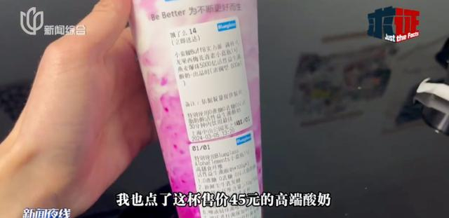 为了验证这一情况,记者也点了这杯售价45元的高端酸奶。