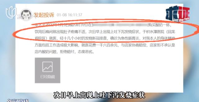 查询黑猫投诉等平台可以发现,该品牌早在2022年就曾接到过类似投诉。投诉人表示,饮用后出现肚子疼痛不适,次日早上出现上吐下泻发烧症状,就医后确诊为急性肠胃炎。
