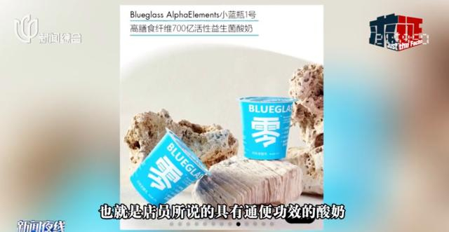 官方信息显示,该系列酸奶每杯的活性益生菌为5000亿(出品时),其中添加了3瓶所谓的“小蓝瓶1号”,也就是店员所说的具有通便功效的酸奶。