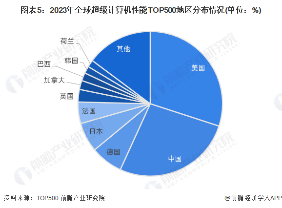 根据2023年6月公布的最新TOP500榜单,美国为上榜数量最多的国家,共上榜150套,占比30%;中国以134套上榜数量紧随其后,占比26.8%;除中美两国之外,德国、日本、法国、英国、加拿大均有10套及以上进入TOP500榜单的超级计算机系统。