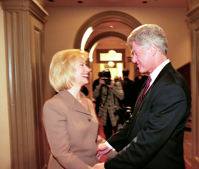 比尔·克林顿成为总统后,她用自己的精力和智慧大力支持他,两人合体成为“克林顿夫妇”,反对的声音从阿肯色州低级的闲言碎语,变成了一首恢宏的国际交响曲,大多数时候,矛头直接指向“希拉里”。她的戒备心变得空前强烈,但野心也越来越大。最终,她搬进了白宫西翼的办公室。从此以后,比起第一夫人,她反而更像一名活动中的政治家。丈夫离开白宫后,她先是成为参议员,后成为国务卿。