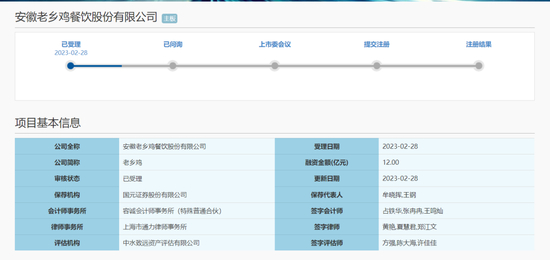 3月1日,安徽老乡鸡餐饮股份有限公司(下称“老乡鸡”)主板IPO获上交所受理,本次拟募资12亿元。继去年5月、10月分别提交招股书后,这已经是老乡鸡第三次向IPO发起冲刺。