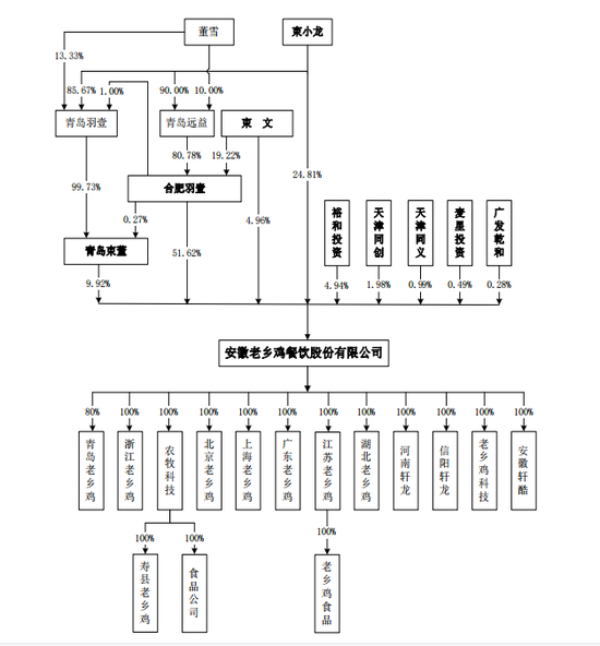 招股书显示,束从轩、张琼、束小龙、董雪、束文5名家族成员为老乡鸡实际控制人。