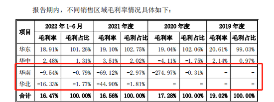 在老乡鸡的主要销售区域——华东地区,报告期内的毛利率分别为20.61%、19.04%、19.10%和18.91%,其实基本能够接近行业平均值。