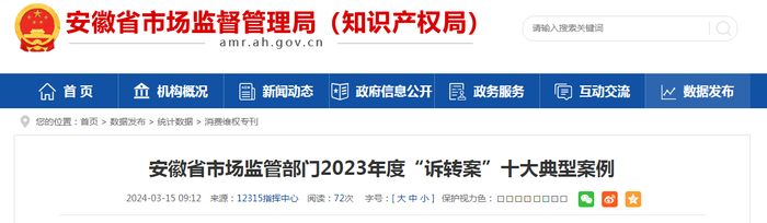 安徽省市场监管部门2023年度“诉转案”十大典型案例