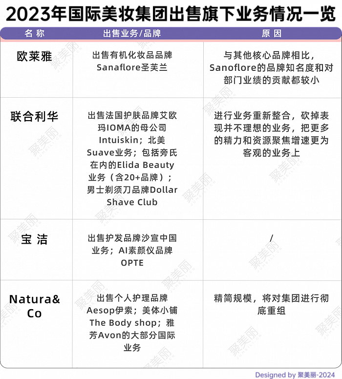 而Natura&Co在2023年4月、11月分别将旗下Aesop伊索、The Body Shop抛售。前者被欧莱雅纳入麾下,而后者在出售后如今面临破产重整困境。