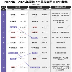 随着巴西化妆品巨头Natura&Co发布2023年财报数据,2023年国际美妆上市集团TOP11业绩已全部公布,全球11强化妆品上市集团的最新排行也随之出炉。