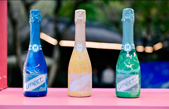3月18日,第110届全国糖酒交易会期间,茅台生态农业UMEET蓝莓气泡酒新品发布会在成都举行。本次活动发布的蓝莓气泡酒共有五种风味,分别是蓝莓味、香柚味、茉莉茶味、百香果味、青梅味,容量为375mL/瓶,酒精度为6%vol。其中百香果味和青梅味将在后续上市。市场售价118元。