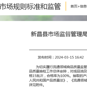 新昌县市场监督管理局2024年流通领域成品油及车用尿素质量抽检信息公示